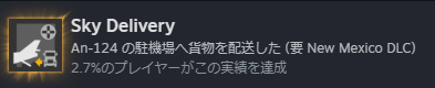 ニューメキシコのアルバカーキにあるUltimusで特殊な荷下ろしを完了させると、実績“Sky Delivery”が解除されます。ここではアメリカントラックシミュレーターにおいて数少ない“輸送機内への荷下ろし“が出来るのです。