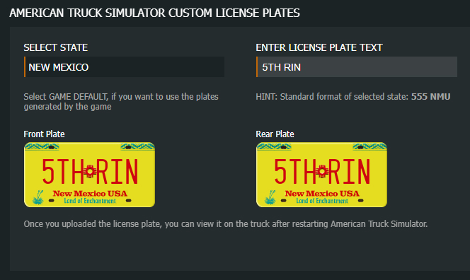 アメリカントラックシミュレーターのオンラインポータルサイト”World of Trucks”で個人プロフィールを編集すると、自分のトラックに取り付けるカスタムライセンスプレートを作成することが出来るのですが、
