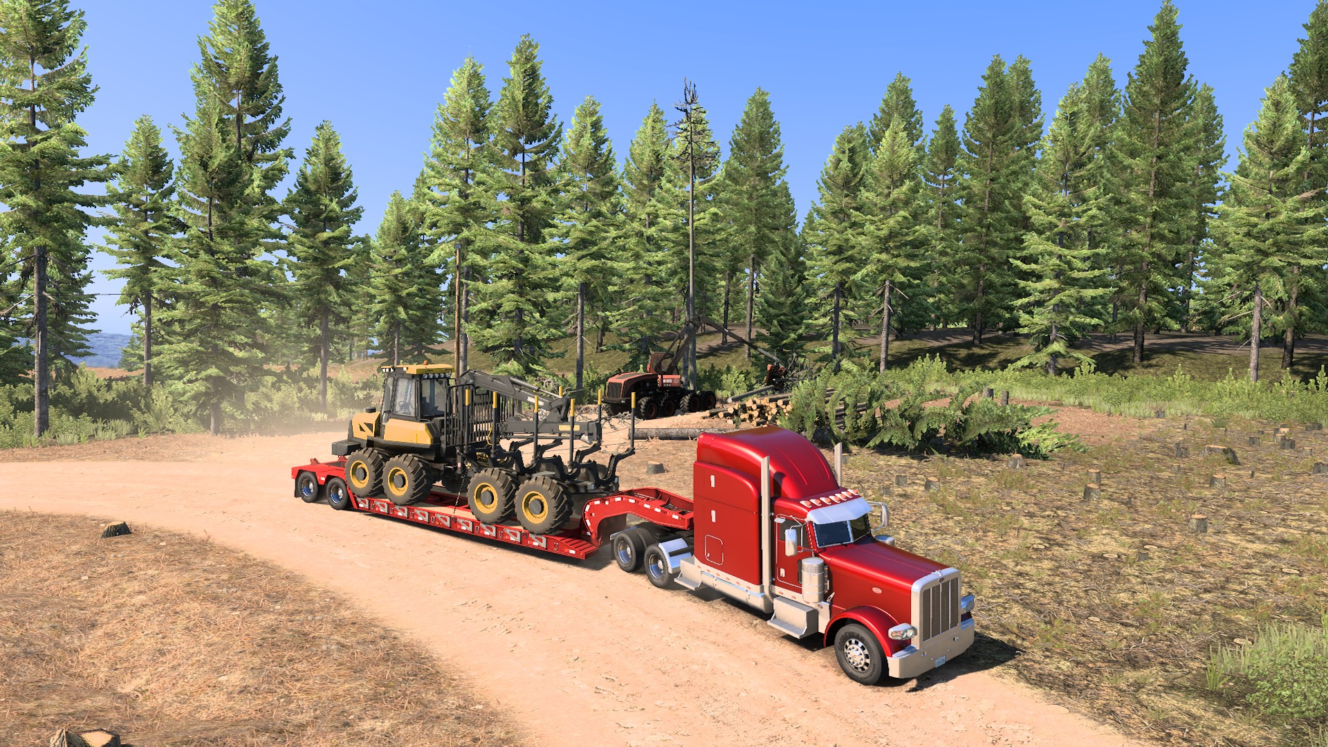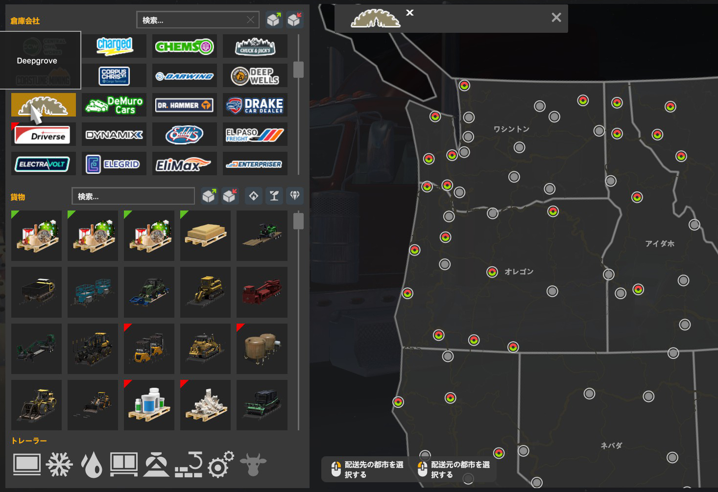 たとえばオレゴン州の実績“ランバージャック(木こり)”を解除するため何度も立ち寄ることになる州内のディープグローブ社の場合、フォレストマシナリーDLCがあればより幅広い内容で仕事が受注出来るので楽しさが広がります。