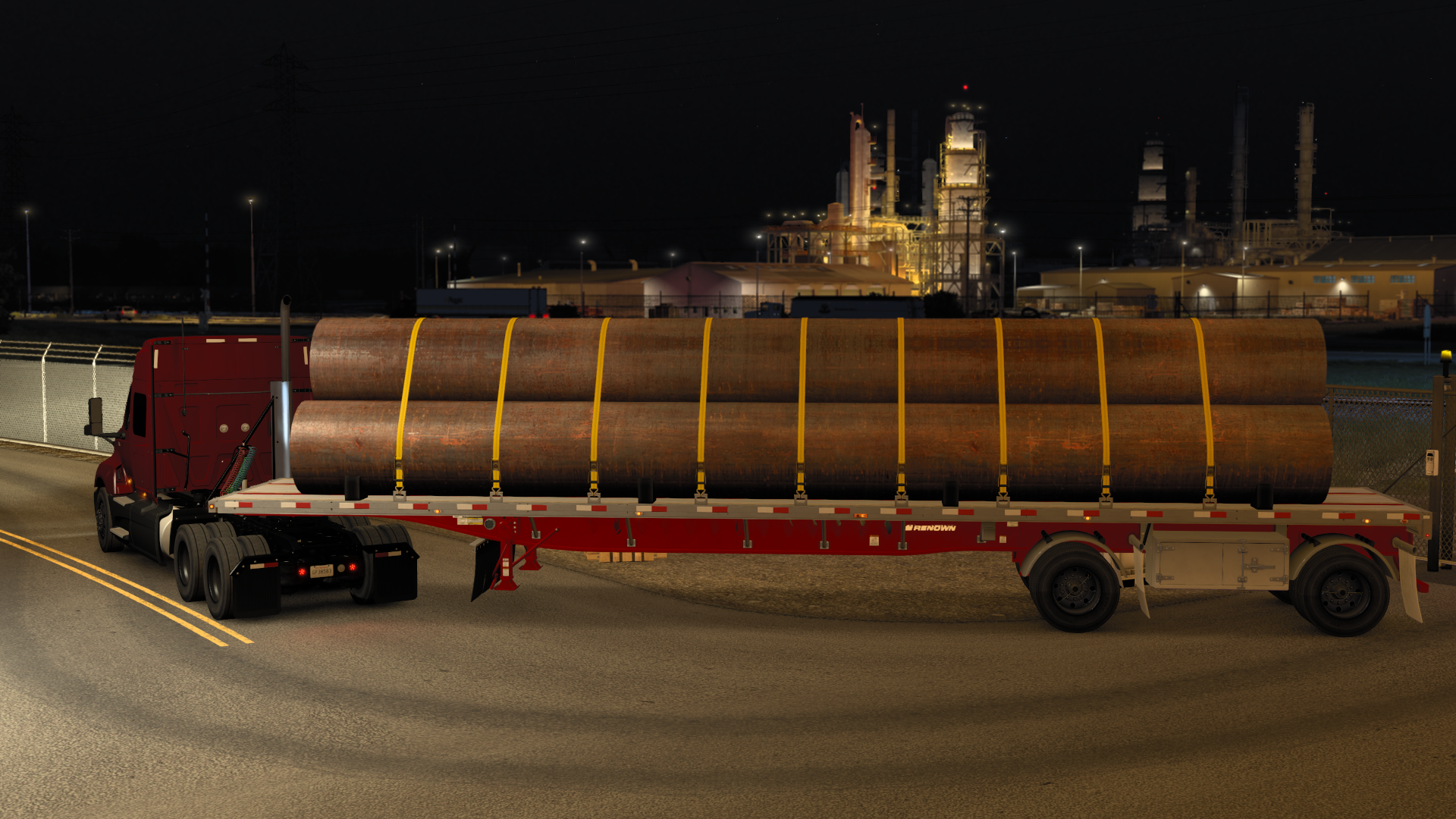 例えばこちらのような組み合わせです。これはいけません。“キャビンと積荷の間になにも無いフラットベッドで鋼管を運ぶ”というデスゲームをしています。